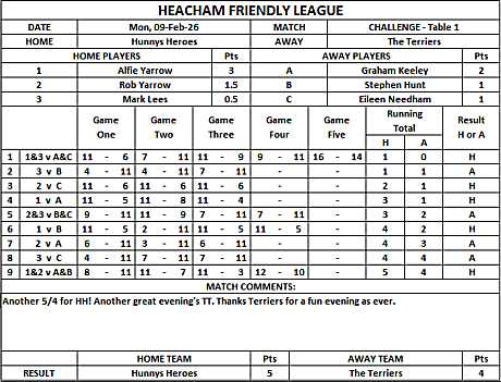 HEACHAM INTERNAL TABLE TENNIS LEAGUE