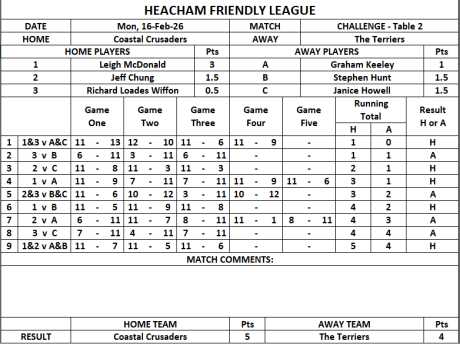Graham Keeley 1 point while Steve Hunt
