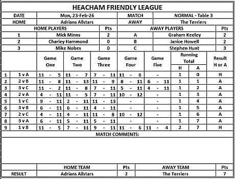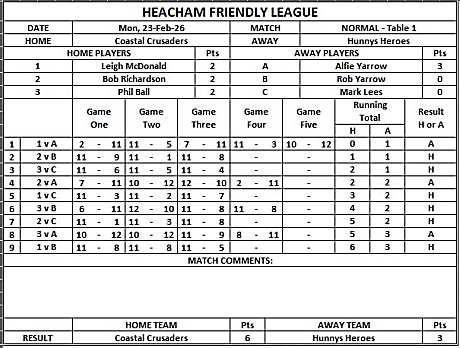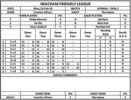 HEACHAM INTERNAL TABLE TENNIS LEAGUE