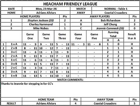 On table one Coastal Crusaders had a