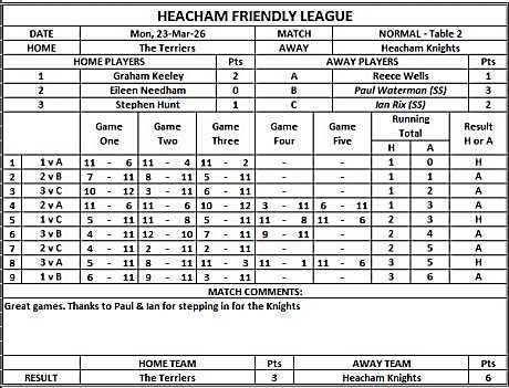 Heacham Knights beat The Terriers 6-3.