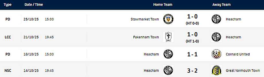 Heacham first team lost to Fakenham Town 1-0 in