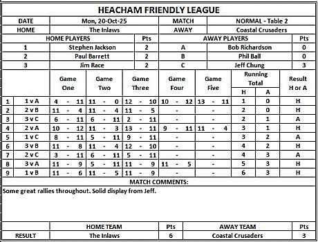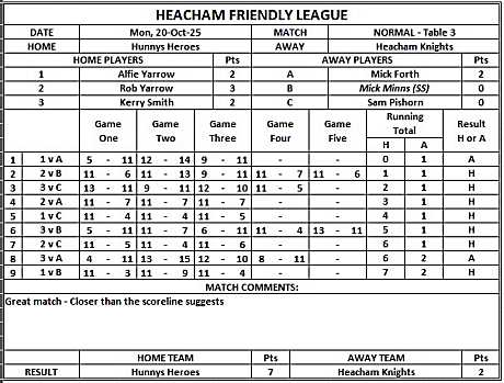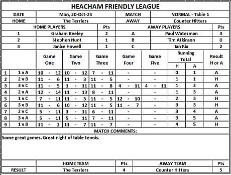 HEACHAM INTERNAL TABLE TENNIS LEAGUE