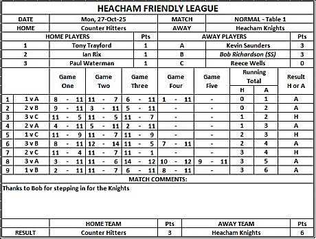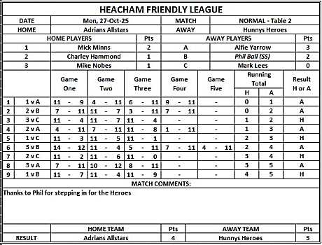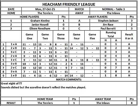 HEACHAM INTERNAL TABLE TENNIS LEAGUE