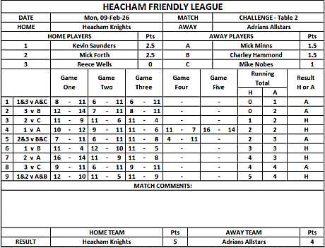 HEACHAM INTERNAL TABLE TENNIS LEAGUE