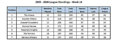 league leaders The Inlaws. So a big 7-2
