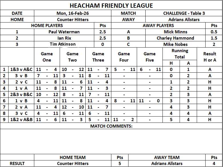 Adrian’s Allstars 5-4. Paul Waterman and