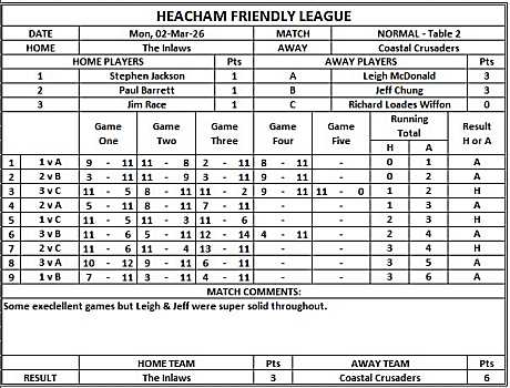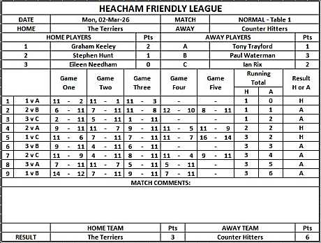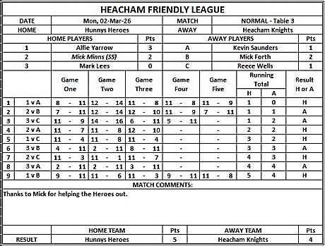 HEACHAM INTERNAL TABLE TENNIS LEAGUE